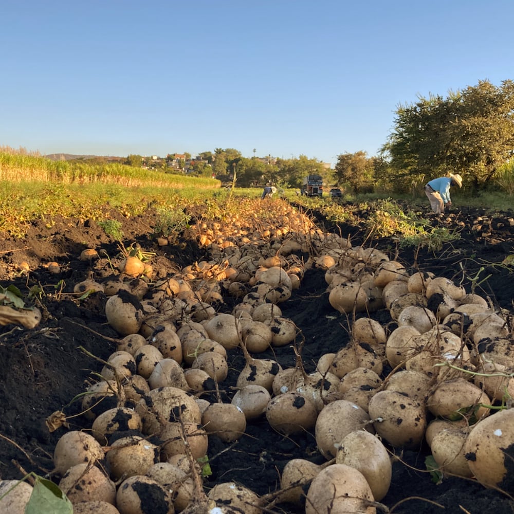 - ¿Cuál es el rendimiento de cosecha? En 2021, nuestro rendimiento para jícama mediana de 0.7-1.5 kg en promedio fue de 28 toneladas/hectárea.